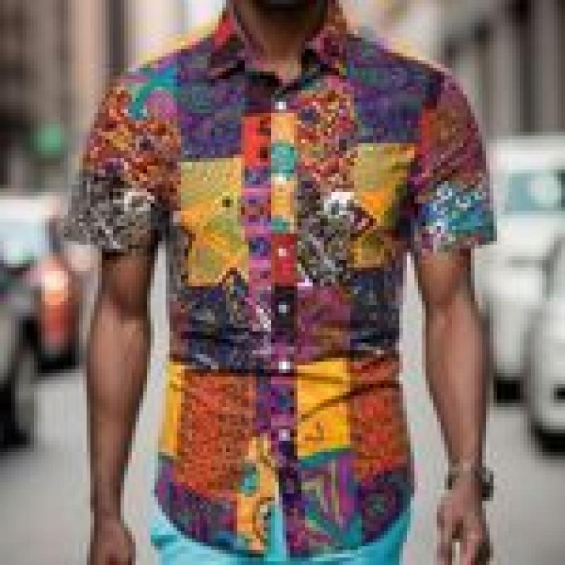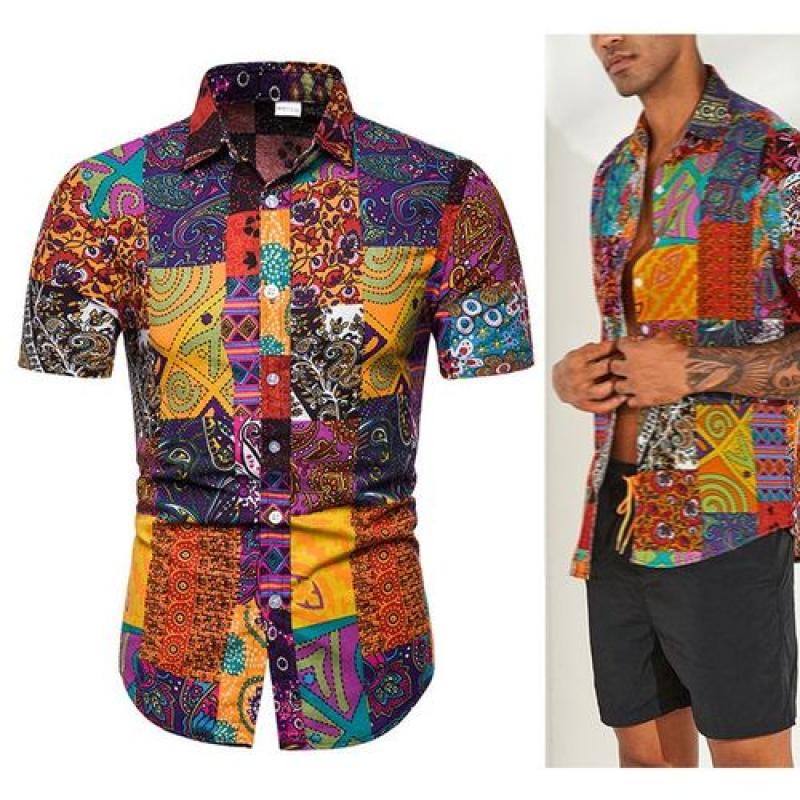 Berrykey Mens Patterned Vintage T-shirts Beach Floral Short Sleeve Shirts Polo
